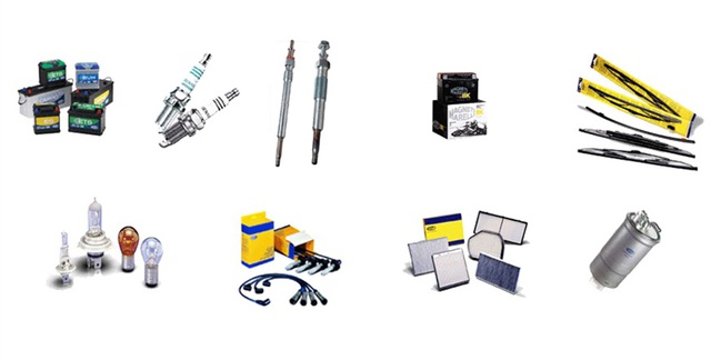 Aküler, Ampuller, Kabin filtreleri, Yakıt filtreleri, Yağ filtreleri, Kızdırma bujileri, Ateşleme bujisi kabloları, Cam silecekleri...